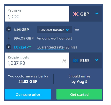 Аккуратный сервис от друзей из Литвы, работают как часики. В саппорт обращаться как-то даже и не приходилось. Сервис предлагает сделать бесплатный перевод, который придёт аж на 4-ый день, но обычно используется перевод за £0.99 комиссии, который и будем использовать в нашем сравнении.