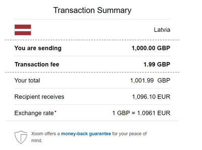 И так, переводим £1000 в Латвию.